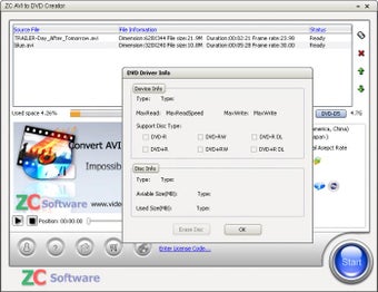 ZC AVI to DVD Creator est un outil de conversion qui transforme vos fichiers vidéos AVI ou DivX en un DVD à regarder sur n'importe quelle platine de salon.